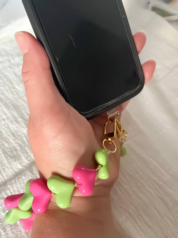Elk koord is met liefde met de hand gemaakt en versierd met speelse hartjes in frisse kleuren. Perfect om je outfit compleet te maken én je telefoon altijd binnen handbereik te houden. De lengte van het koordje is 31 cm.